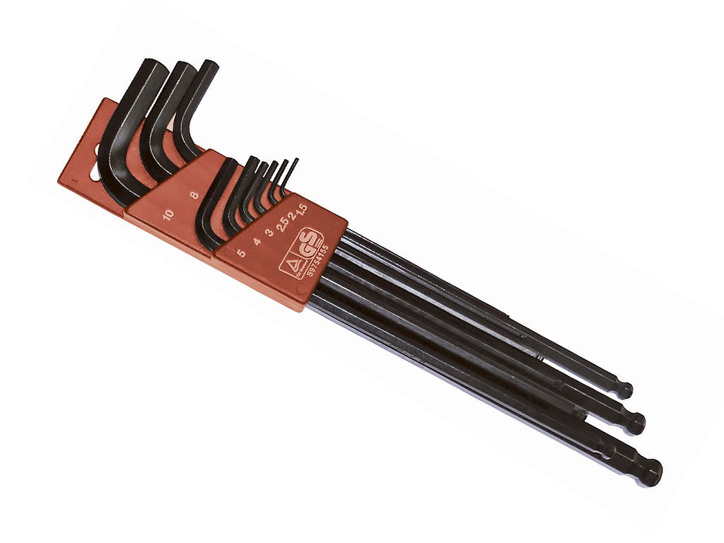 Торцевые длинные ключи с шестигранным шаром на конце, 9 шт. D 1,5 - 2 - 2,5 - 3 - 4 - 5 - 6 - 8 - 10 мм, в органайзере.